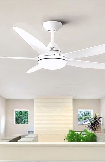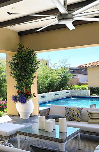 Weather-resistant fan installation for verandas, patios and covered outdoor areas. Specially designed to withstand humidity and outdoor conditions.